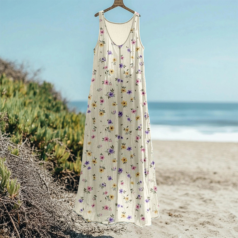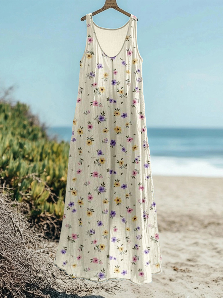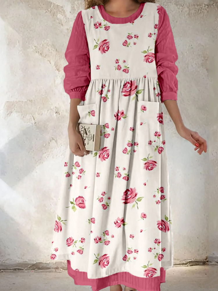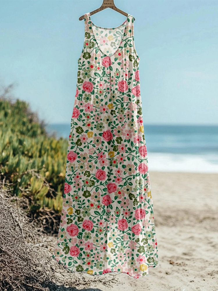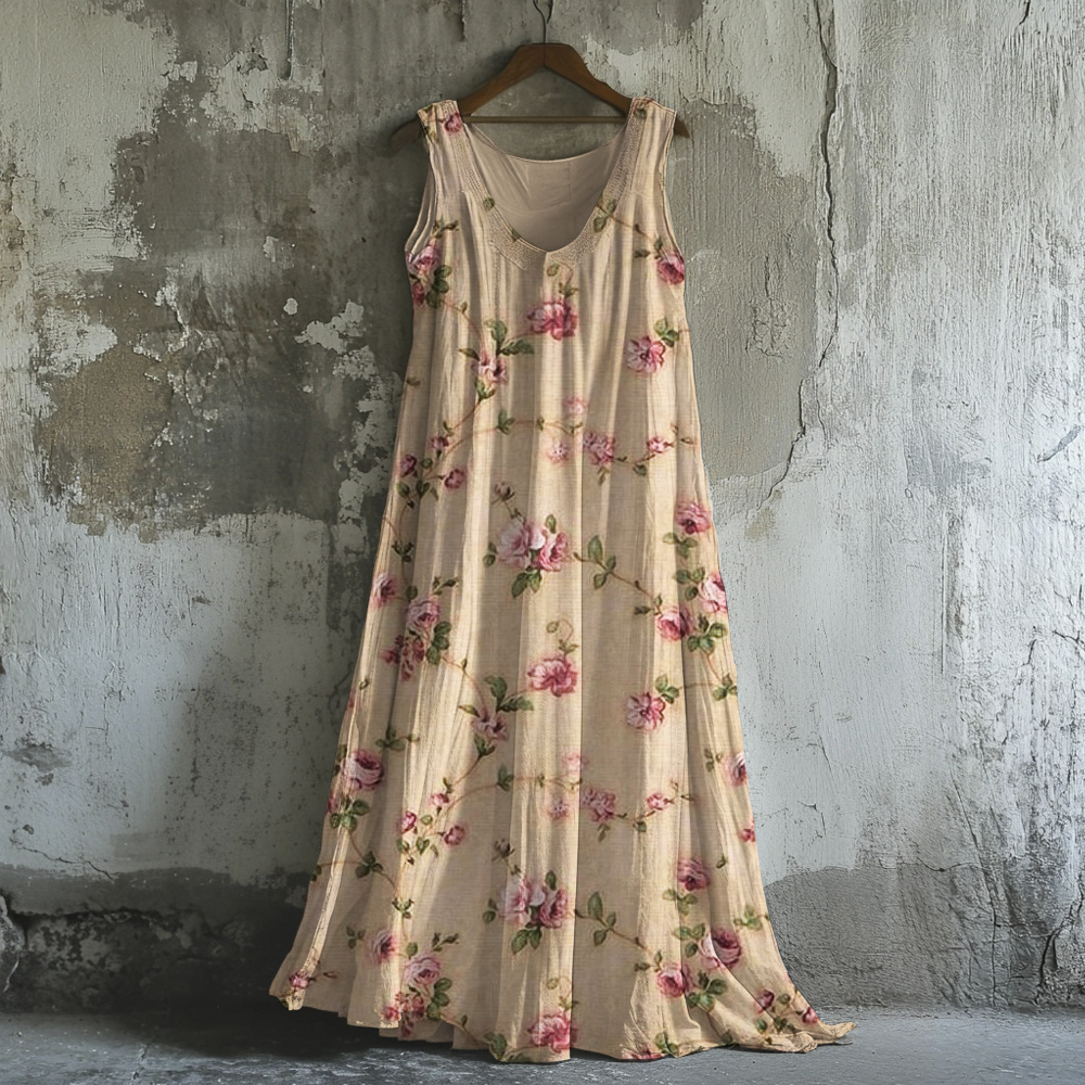 Vintage Floral Round Neck Sleeveless Midi Dress