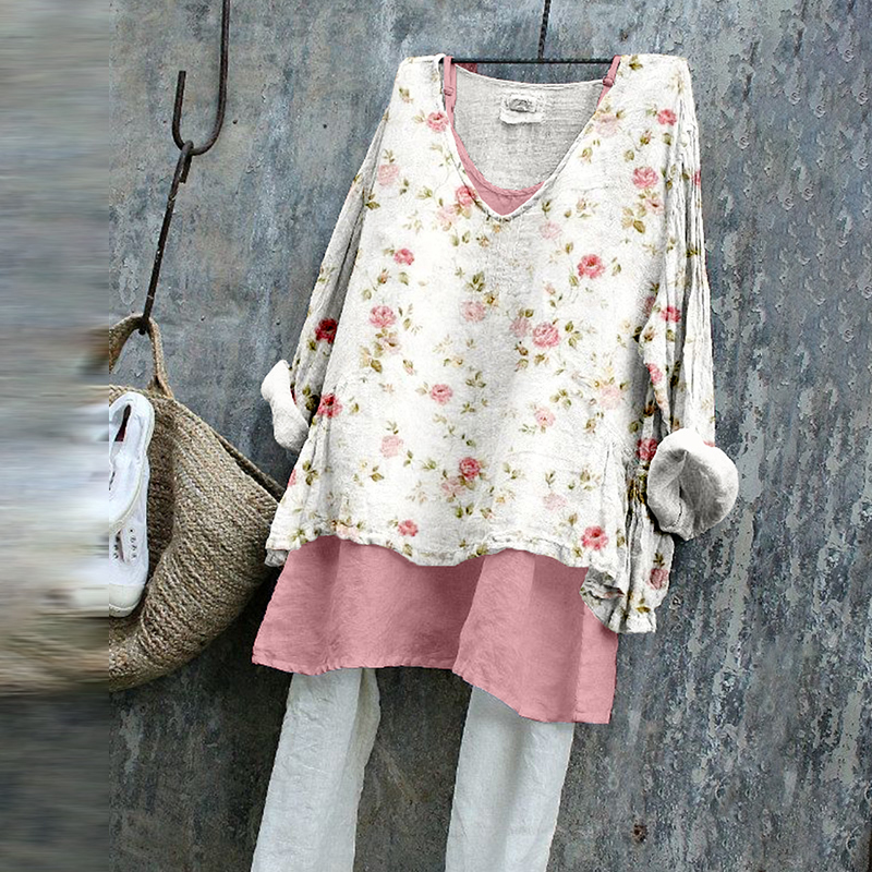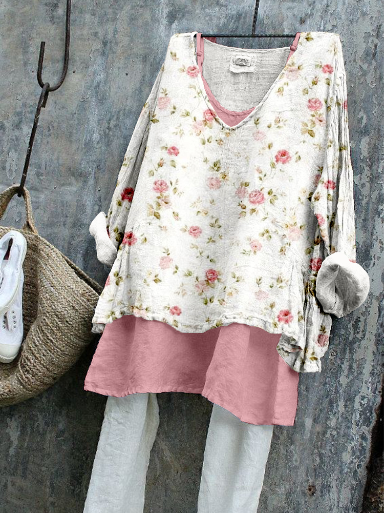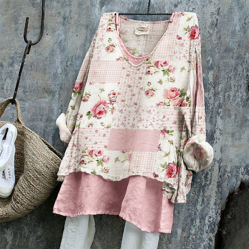 Vintage Cottagecore Floral Pattern Linen Blend Tunic