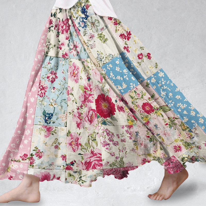 Vintage Floral Transgender Flag Colorblock Flowy Wide Skirt